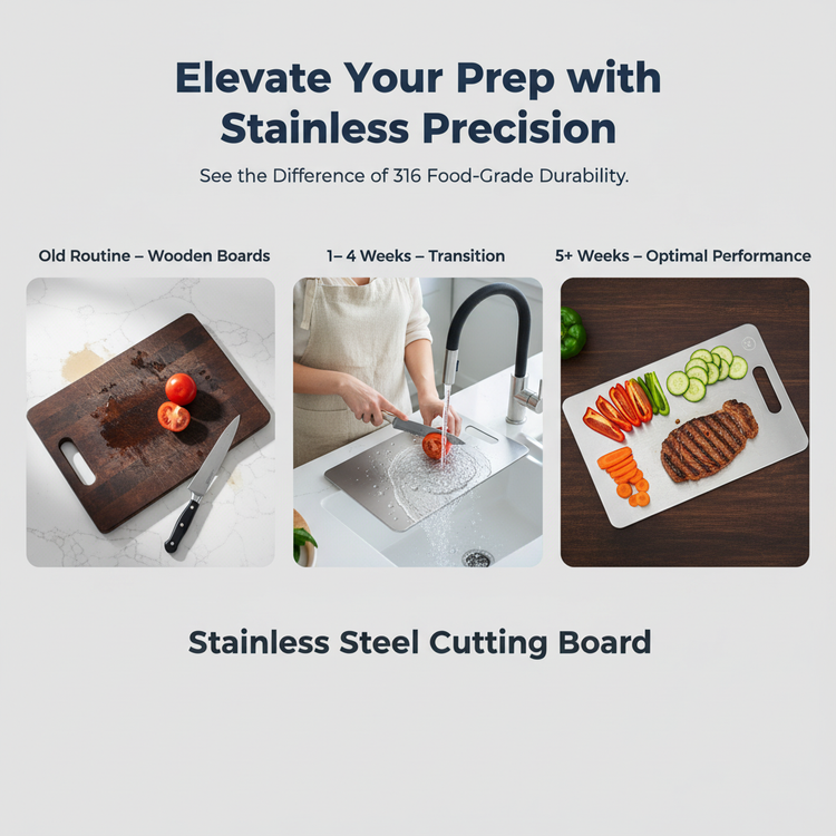 Watch how our 316-grade stainless steel board stands up to daily chopping, slicing, and dicing. Designed for stability and easy cleaning, it’s your kitchen’s new MVP.