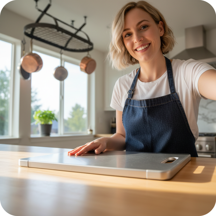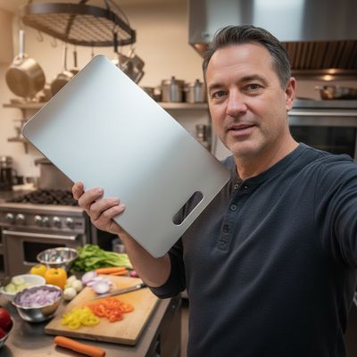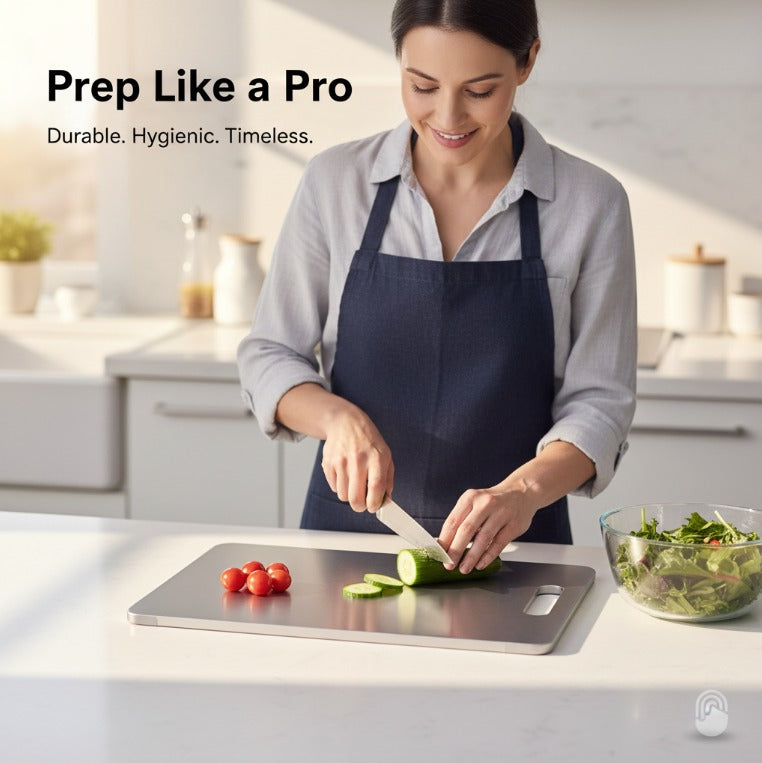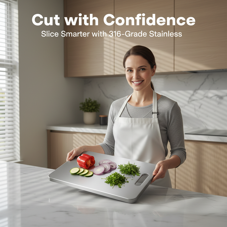 Discover how our stainless steel cutting board streamlines your cooking process from unboxing to serving.